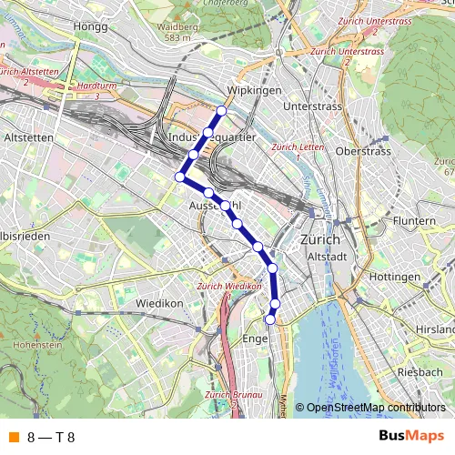 See why over 2 million users trust and consider busmaps.com as the best public transport website. busmaps gives you Zuerich Trams suggested routes, real-time bus tracker, line route maps in Zuerich, and helps to find the closest 8 tram stops near you. No internet available? Download an offline PDF map and bus schedule for the 8 tram to take on your trip.