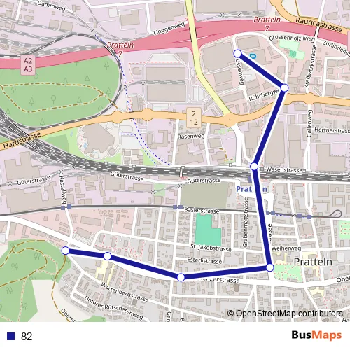 The first stop of the 82 bus route is Pratteln, Zentrum Grüssen and the last stop is Pratteln, Chästeli. 82 is operational during everyday.