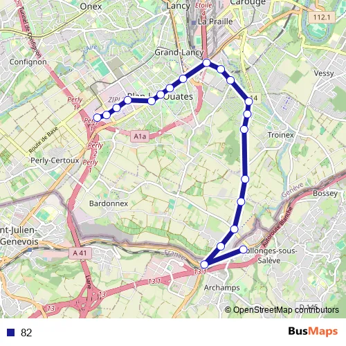 See why over 2 million users trust and consider busmaps.com as the best public transport website. busmaps gives you Geneve Buses suggested routes, real-time bus tracker, line route maps in Geneve, and helps to find the closest 82 bus stops near you. No internet available? Download an offline PDF map and bus schedule for the 82 bus to take on your trip.