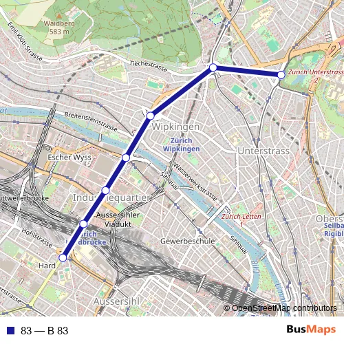 See why over 2 million users trust and consider busmaps.com as the best public transport website. busmaps gives you Zuerich Buses suggested routes, real-time bus tracker, line route maps in Zuerich, and helps to find the closest 83 bus stops near you. No internet available? Download an offline PDF map and bus schedule for the 83 bus to take on your trip.