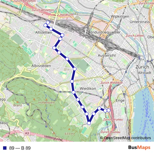 Bus 89 - B 89: Full Schedule in Zuerich