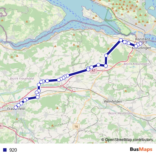 Bahnhofstrasse - Zürcherstrasse - Weinfelderstrasse - Bahnhofstrasse - Hauptstrasse - Frauenfelderstrasse - Kreuzlingerstrasse - Connylandstrasse - Illharterstrasse - Weiherhüslistrasse - Hauptstrasse - Dorfstrasse - Hauptstrasse - Stationsstrasse - Hauptstrasse - Unterseestrasse - Bahnhofstrasse