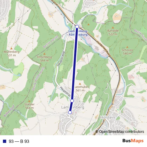 The first stop of the 93 bus route is Lampenberg, Dorf and the last stop is Lampenberg-Ramlinsburg,Station. 93 (B 93) is operational during on weekdays.