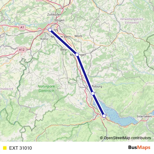 The first stop of the EXT 31010 rail route is Spiez and the last stop is Bern. EXT 31010 is operational during everyday.