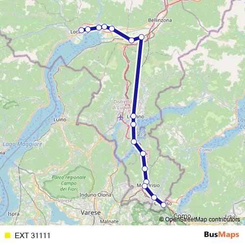 The first stop of the EXT 31111 rail route is Locarno and the last stop is
