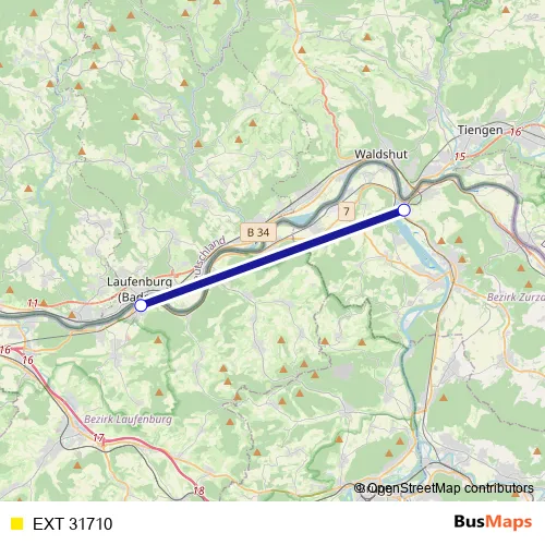 The first stop of the EXT 31710 rail route is Koblenz and the last stop is Laufenburg. EXT 31710 is operational during everyday.