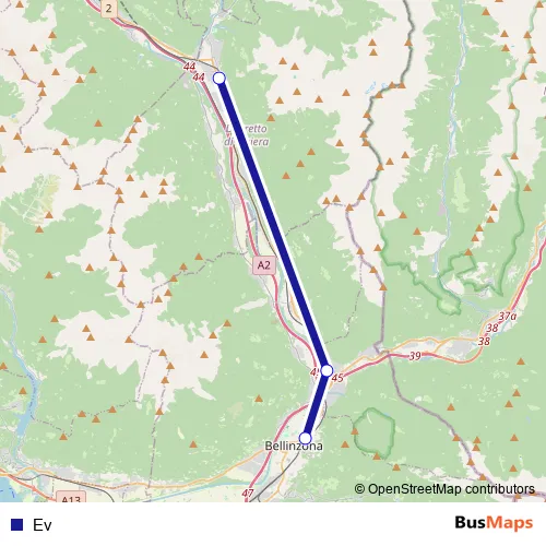 The first stop of the Ev bus route is Biasca, Stazione and the last stop is Bellinzona, Stazione. Ev is operational during everyday.