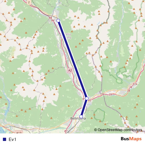 The first stop of the Ev1 bus route is Locarno, Stazione and the last stop is Biasca, Stazione. Ev1 is operational during everyday.