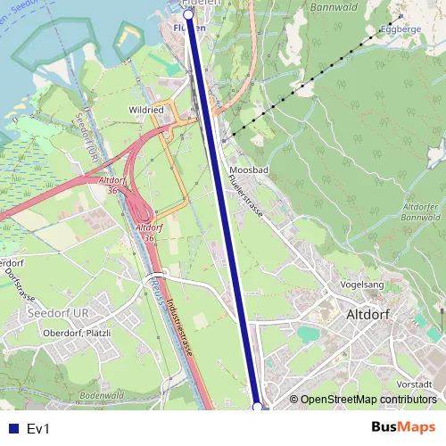 The first stop of the Ev1 bus route is Flüelen, Bahnhof and the last stop is Altdorf UR, Bahnhof West. Ev1 is operational during on weekdays.