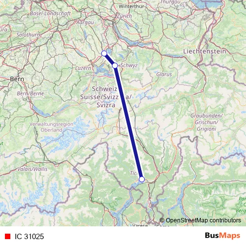 The first stop of the IC 31025 rail route is Rotkreuz and the last stop is Tenero. IC 31025 is operational during everyday.