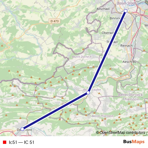 The first stop of the Ic51 rail route is Delémont and the last stop is Basel Sbb. Ic51 (IC 51) is operational during everyday.