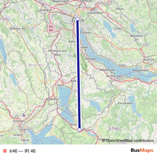 The first stop of the Ir46 rail route is Zürich Hb and the last stop is Arth-Goldau. Ir46 (IR 46) is operational during everyday.