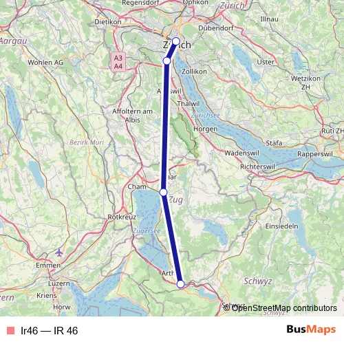 The first stop of the Ir46 rail route is Zürich Hb and the last stop is Arth-Goldau. Ir46 (IR 46) is operational during everyday.