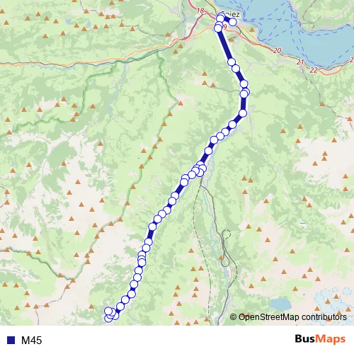 See why over 2 million users trust and consider busmaps.com as the best public transport website. busmaps gives you Thun Buses suggested routes, real-time bus tracker, line route maps in Thun, and helps to find the closest M45 bus stops near you. No internet available? Download an offline PDF map and bus schedule for the M45 bus to take on your trip.