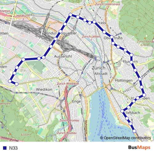 See why over 2 million users trust and consider busmaps.com as the best public transport website. busmaps gives you Zuerich Buses suggested routes, real-time bus tracker, line route maps in Zuerich, and helps to find the closest N33 bus stops near you. No internet available? Download an offline PDF map and bus schedule for the N33 bus to take on your trip.