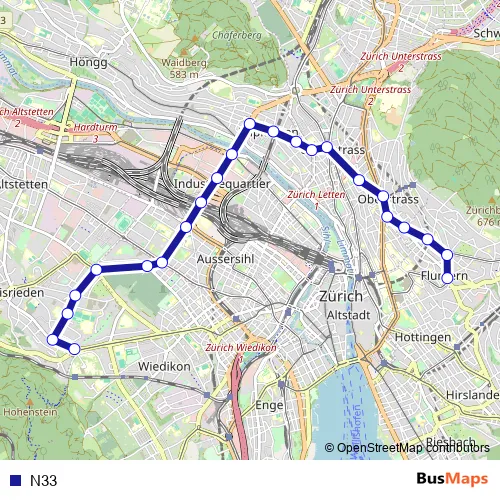 See why over 2 million users trust and consider busmaps.com as the best public transport website. busmaps gives you Zuerich Buses suggested routes, real-time bus tracker, line route maps in Zuerich, and helps to find the closest N33 bus stops near you. No internet available? Download an offline PDF map and bus schedule for the N33 bus to take on your trip.