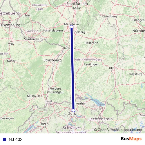 See why over 2 million users trust and consider busmaps.com as the best public transport website. busmaps gives you Zuerich Rail Services suggested routes, real-time bus tracker, line route maps in Zuerich, and helps to find the closest NJ 402 rail stops near you. No internet available? Download an offline PDF map and bus schedule for the NJ 402 rail to take on your trip.
