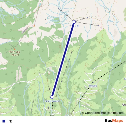 The first stop of the Pb cable-car route is Eierschwand and the last stop is Ruogig. Pb is operational during everyday.