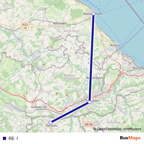 See why over 2 million users trust and consider busmaps.com as the best public transport website. busmaps gives you Romanshorn Rail Services suggested routes, real-time bus tracker, line route maps in Romanshorn, and helps to find the closest RE 1 rail stops near you. No internet available? Download an offline PDF map and bus schedule for the RE 1 rail to take on your trip.