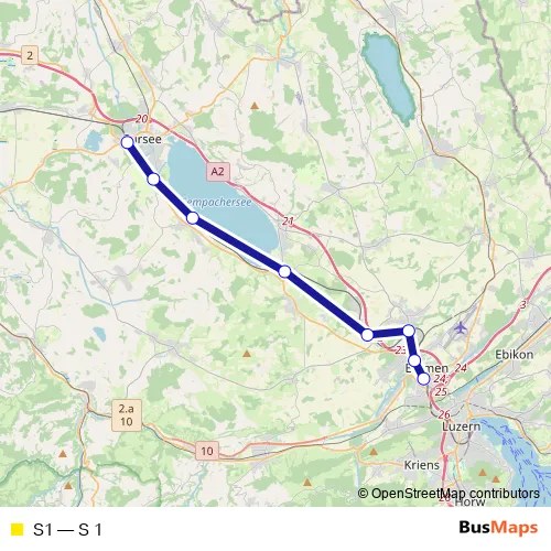 See why over 2 million users trust and consider busmaps.com as the best public transport website. busmaps gives you Luzern Rail Services suggested routes, real-time bus tracker, line route maps in Luzern, and helps to find the closest S1 rail stops near you. No internet available? Download an offline PDF map and bus schedule for the S1 rail to take on your trip.