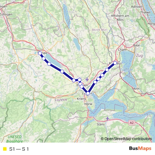 See why over 2 million users trust and consider busmaps.com as the best public transport website. busmaps gives you Luzern Rail Services suggested routes, real-time bus tracker, line route maps in Luzern, and helps to find the closest S1 rail stops near you. No internet available? Download an offline PDF map and bus schedule for the S1 rail to take on your trip.