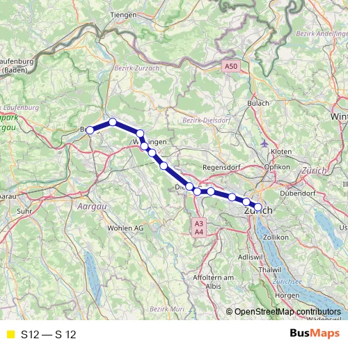 See why over 2 million users trust and consider busmaps.com as the best public transport website. busmaps gives you Zuerich Rail Services suggested routes, real-time bus tracker, line route maps in Zuerich, and helps to find the closest S12 rail stops near you. No internet available? Download an offline PDF map and bus schedule for the S12 rail to take on your trip.