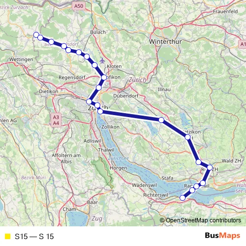 The first stop of the S15 rail route is Niederweningen and the last stop is Pfäffikon Sz. S15 (S 15) is operational during on weekends.