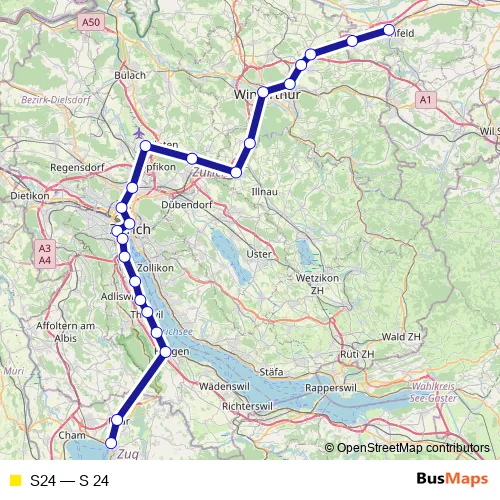 See why over 2 million users trust and consider busmaps.com as the best public transport website. busmaps gives you Zuerich Rail Services suggested routes, real-time bus tracker, line route maps in Zuerich, and helps to find the closest S24 rail stops near you. No internet available? Download an offline PDF map and bus schedule for the S24 rail to take on your trip.