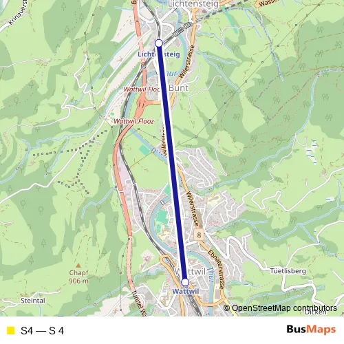The first stop of the S4 rail route is Lichtensteig and the last stop is