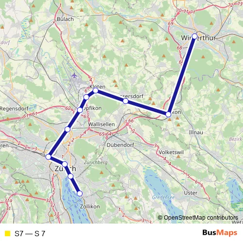 See why over 2 million users trust and consider busmaps.com as the best public transport website. busmaps gives you Zuerich Rail Services suggested routes, real-time bus tracker, line route maps in Zuerich, and helps to find the closest S7 rail stops near you. No internet available? Download an offline PDF map and bus schedule for the S7 rail to take on your trip.