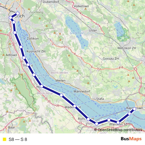 See why over 2 million users trust and consider busmaps.com as the best public transport website. busmaps gives you Zuerich Rail Services suggested routes, real-time bus tracker, line route maps in Zuerich, and helps to find the closest S8 rail stops near you. No internet available? Download an offline PDF map and bus schedule for the S8 rail to take on your trip.