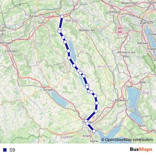 Rail S9 in Luzern: Stops & Timetable