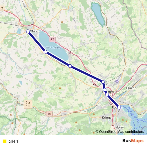 The first stop of the SN 1 rail route is Sursee and the last stop is Luzern. SN 1 is operational during on weekends.