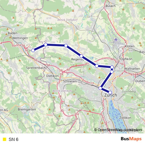See why over 2 million users trust and consider busmaps.com as the best public transport website. busmaps gives you Zuerich Rail Services suggested routes, real-time bus tracker, line route maps in Zuerich, and helps to find the closest SN 6 rail stops near you. No internet available? Download an offline PDF map and bus schedule for the SN 6 rail to take on your trip.