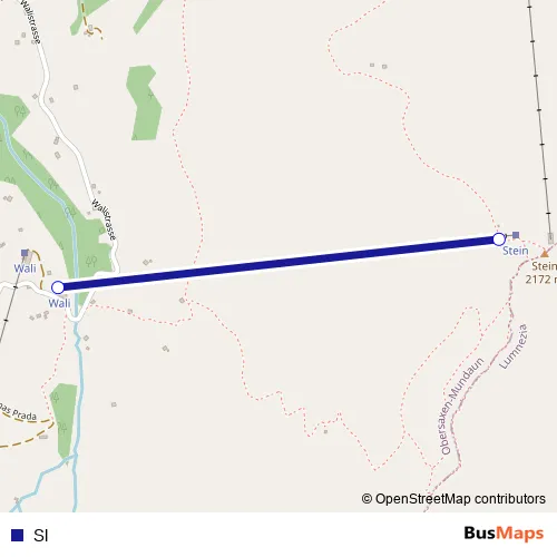 The first stop of the Sl cable-car route is Stein (Obersaxen) and the last stop is Wali. Sl is operational during everyday.
