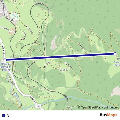 The first stop of the Sl cable-car route is Bergün/Bravuogn Sagliaz and the last stop is Pros da Darlux. Sl is operational during everyday.