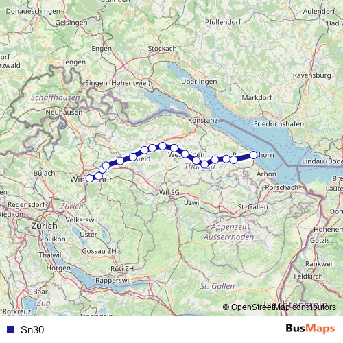 The first stop of the Sn30 rail route is Winterthur and the last stop is Romanshorn. Sn30 is operational during on weekends.