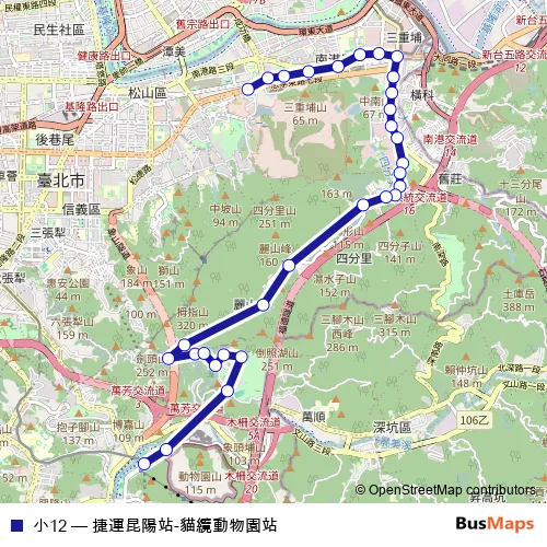 Bus 小12 - 捷運昆陽站-貓纜動物園站: Full Schedule in Taipei