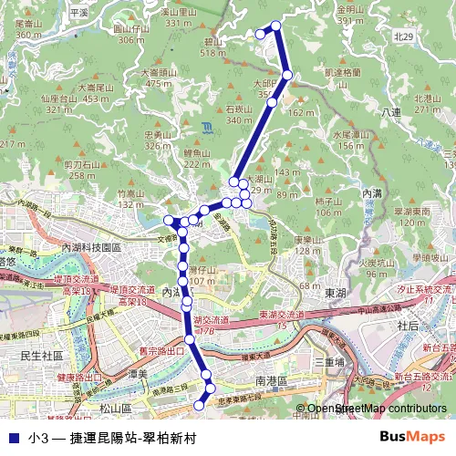 See why over 2 million users trust and consider busmaps.com as the best public transport website. busmaps gives you Taipei Buses suggested routes, real-time bus tracker, line route maps in Taipei, and helps to find the closest 小3 bus stops near you. No internet available? Download an offline PDF map and bus schedule for the 小3 bus to take on your trip.