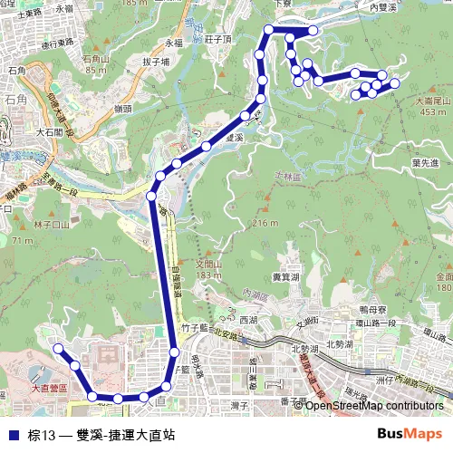 See why over 2 million users trust and consider busmaps.com as the best public transport website. busmaps gives you Taipei Buses suggested routes, real-time bus tracker, line route maps in Taipei, and helps to find the closest 棕13 bus stops near you. No internet available? Download an offline PDF map and bus schedule for the 棕13 bus to take on your trip.