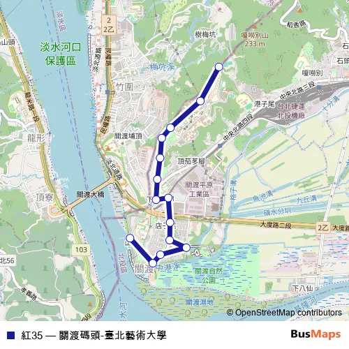 Click here to view the nearest 紅35 - 關渡碼頭-臺北藝術大學 bus stop.