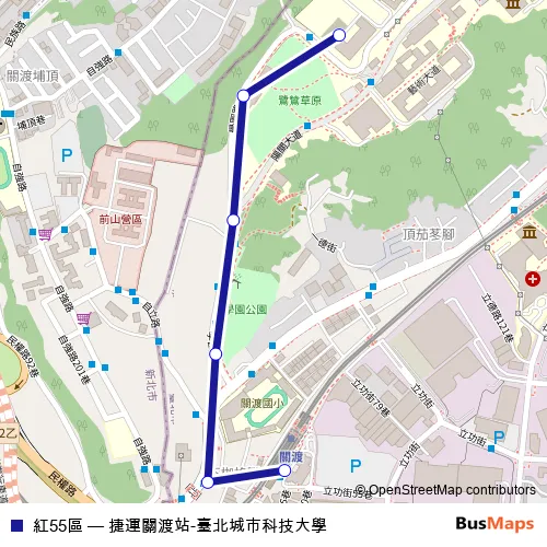 Click here to view the nearest 紅55區 - 捷運關渡站-臺北城市科技大學 bus stop.