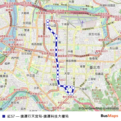 See why over 2 million users trust and consider busmaps.com as the best public transport website. busmaps gives you Taipei Buses suggested routes, real-time bus tracker, line route maps in Taipei, and helps to find the closest 紅57 bus stops near you. No internet available? Download an offline PDF map and bus schedule for the 紅57 bus to take on your trip.