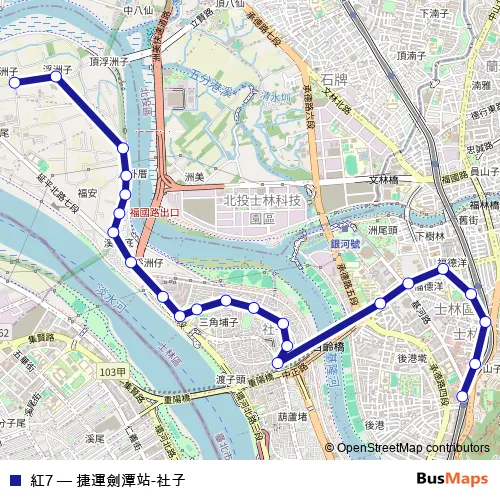 Click here to view the nearest 紅7 - 捷運劍潭站-社子 bus stop.