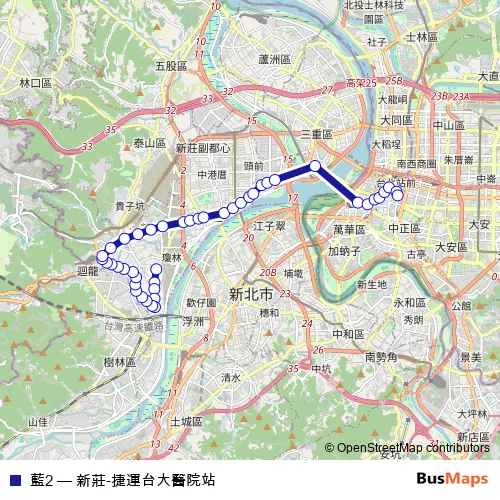 Click here to view the nearest 藍2 - 新莊-捷運台大醫院站 bus stop.
