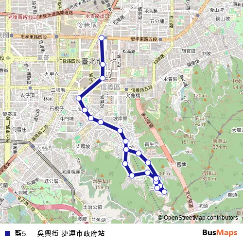 Bus 藍5 - 吳興街-捷運市政府站 in Taipei: Stops & Timetable