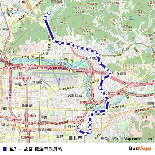 Bus 藍7 - 故宮-捷運市政府站 Schedule in Taipei