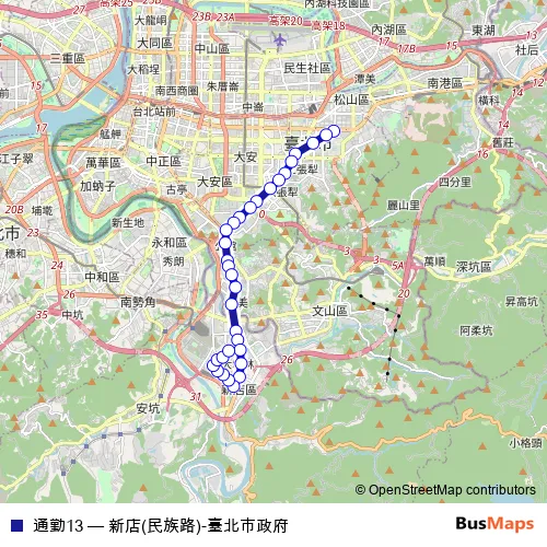 Click here to view the nearest 通勤13 - 新店(民族路)-臺北市政府 bus stop.