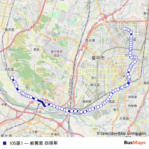 See why over 2 million users trust and consider busmaps.com as the best public transport website. busmaps gives you Taichung Buses suggested routes, real-time bus tracker, line route maps in Taichung, and helps to find the closest 105區1 bus stops near you. No internet available? Download an offline PDF map and bus schedule for the 105區1 bus to take on your trip.