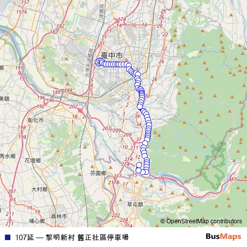 See why over 2 million users trust and consider busmaps.com as the best public transport website. busmaps gives you Taichung Buses suggested routes, real-time bus tracker, line route maps in Taichung, and helps to find the closest 107延 bus stops near you. No internet available? Download an offline PDF map and bus schedule for the 107延 bus to take on your trip.